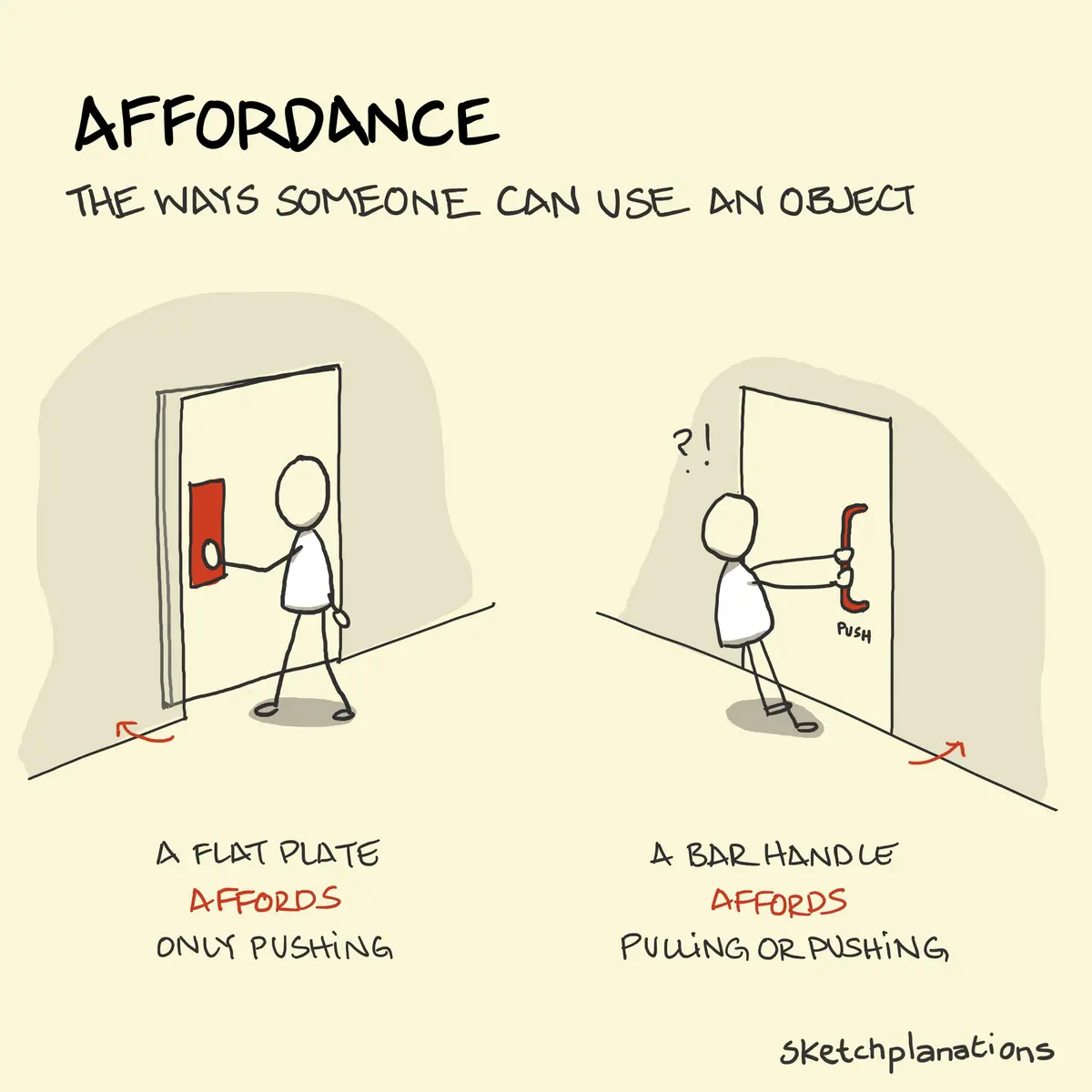 Affordances are how users can interact with a product--whether by design or by users finding stopgaps. Image courtesy Sketchplanations