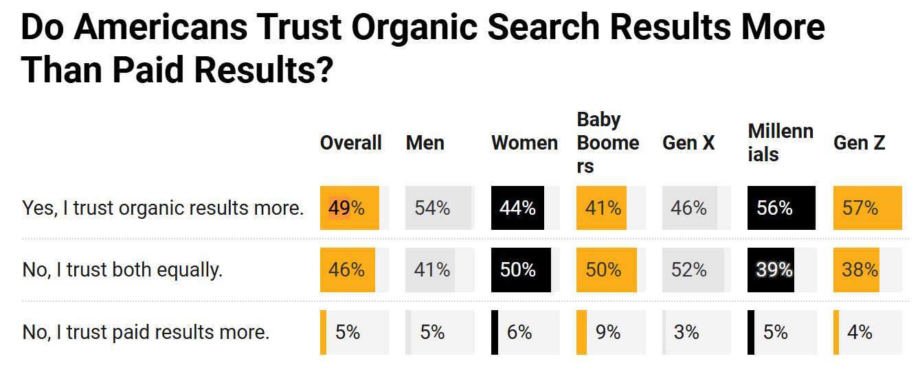 49% of searchers trust organic results more than paid. Image courtesy PageOnePower